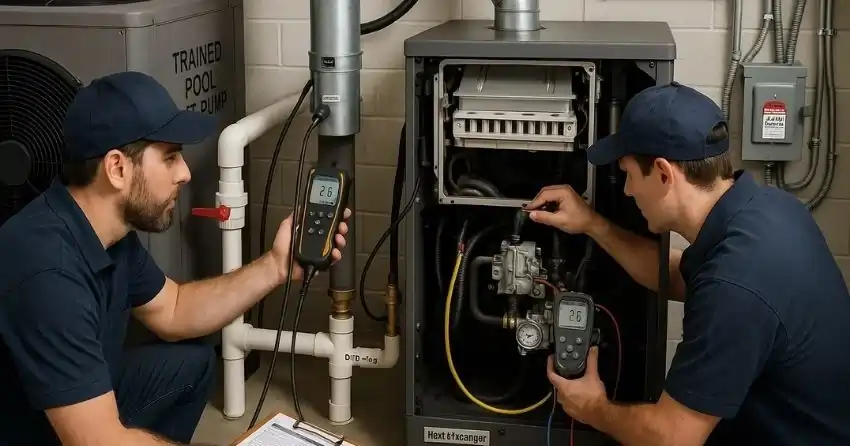Pool heater repair problems in Stratford? HVAC Stratford finds the cause, replaces igniters, sensors, gas valves, control boards, and heat exchangers, clears scale, and confirms operation so the water warms up without unnecessary upsells.